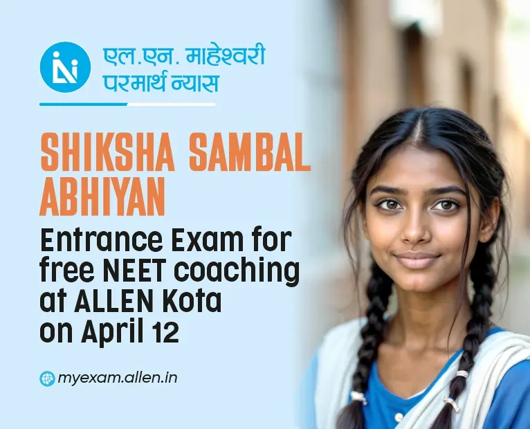 The dates of the entrance examinations for the ALLEN Shiksha Sambal program, conducted jointly by LN Maheshwari Parmarth Trust and ALLEN Career Institute, have been released.